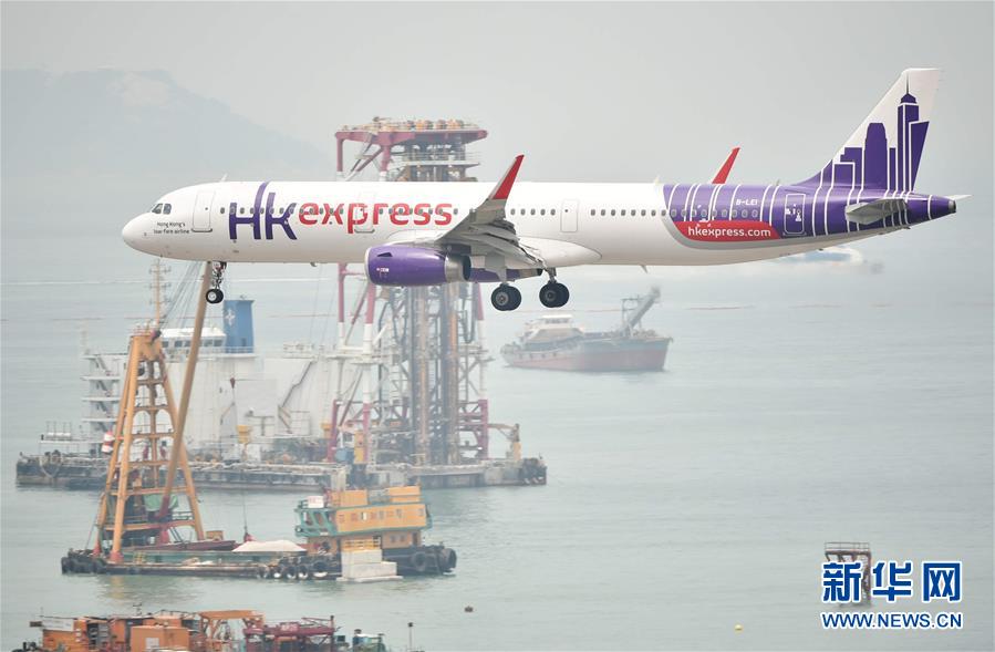 飞机准备降落在香港国际机场(3月28日摄)。 新华社发(王申 摄)