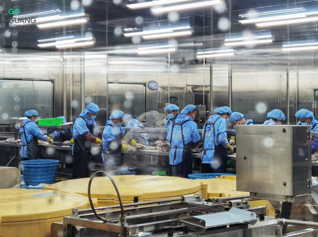 Zhuhai Yitiaoyu Food Technology Co., Ltd. is a processor located in the sea bass industrial park in Baijiao. Inside its modern factory, fish move swiftly along production lines before entering flash-freezing units at -196°C. "We use liquid nitrogen freezing across our products, and it's one of the most advanced technologies available in the industry. A 500-gram fish can be completely frozen in about 15 minutes, preserving up to 95 percent of its fresh flavor," Chen Xiaorong, the company's shareholder, introduced.