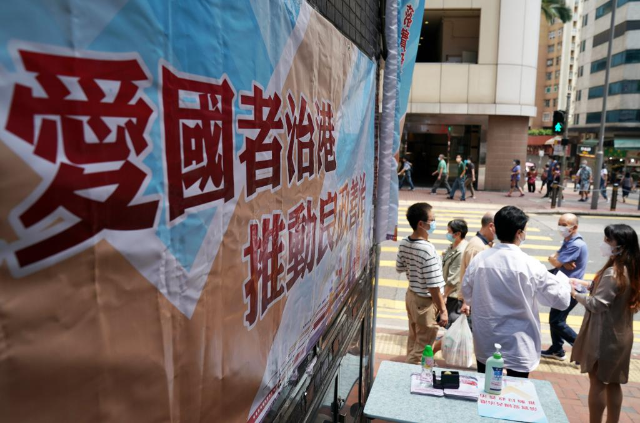 2021年9月21日,香港街头举办“落实爱国者治港 推动良政善治”街站宣传活动。 记者 李钢 摄