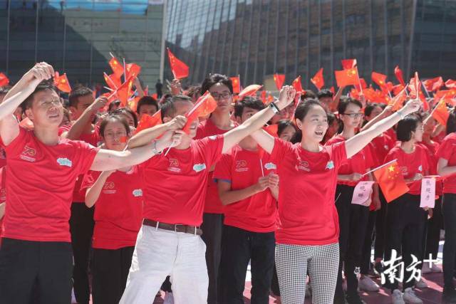 “我和我的祖国,一刻也不能分割……”9月22日,在白云山下的广州白云国际会议中心西广场,约3000名粤港澳青年合唱“我和我的祖国”,快闪拼出“祖国好”三个大字矩阵,以多种方式表达对新中国成立70周年的深情祝福。