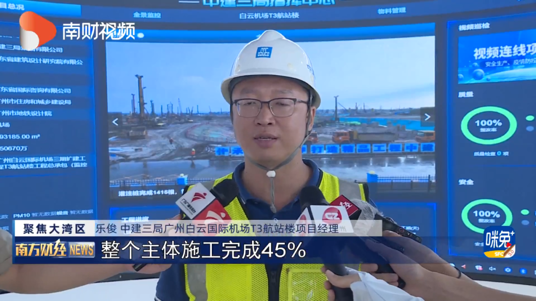 中建三局广州白云国际机场T3航站楼项目经理乐俊表示:“九月底,我们将实现第二次全面封顶,在春节之前,要实现航站楼基本封顶,2023年底,整个主体结构要完成80%,钢构要完成60%。”