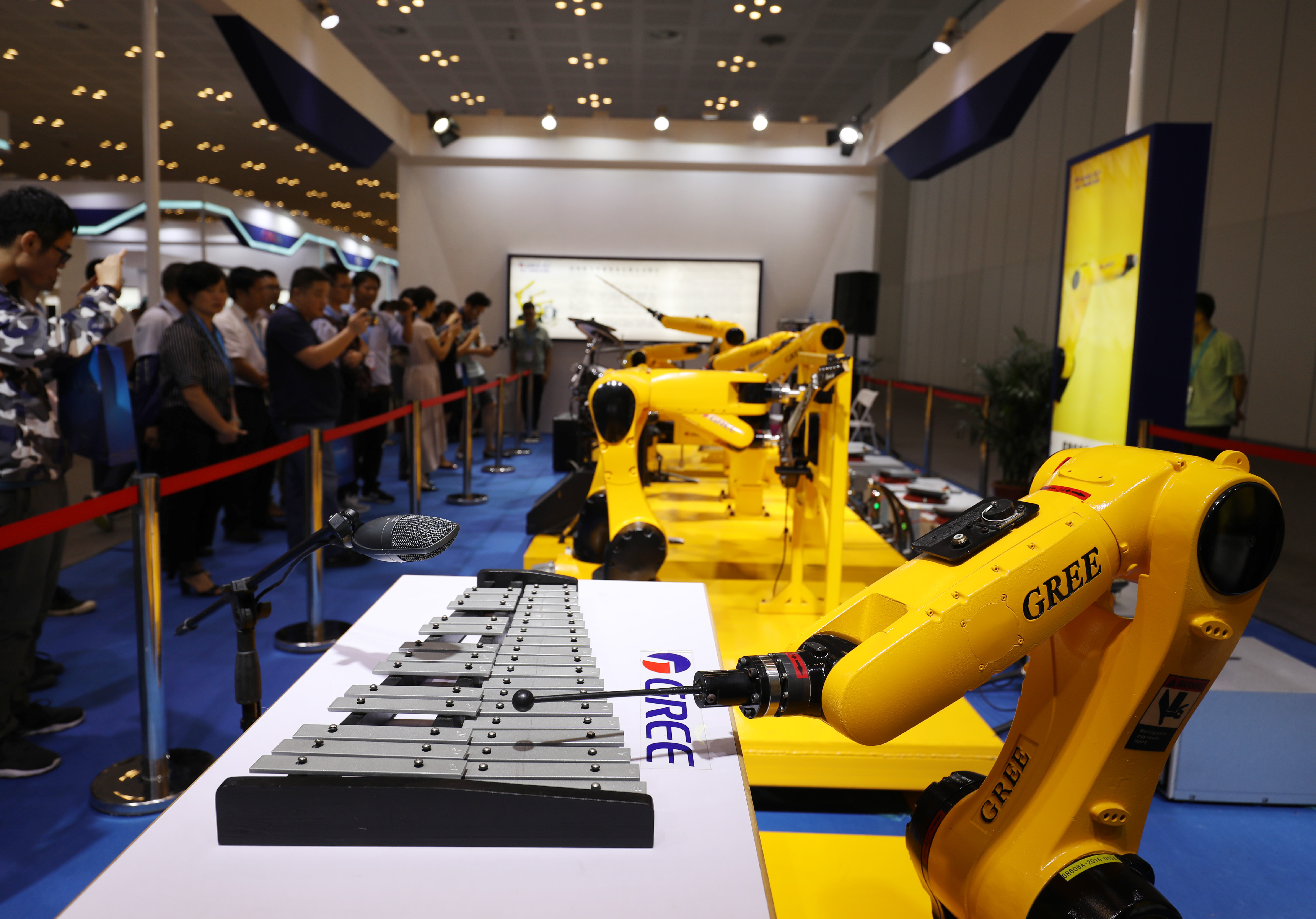 格力智能装备展出了一支“机器人乐队”。南方日报记者 关铭荣 摄